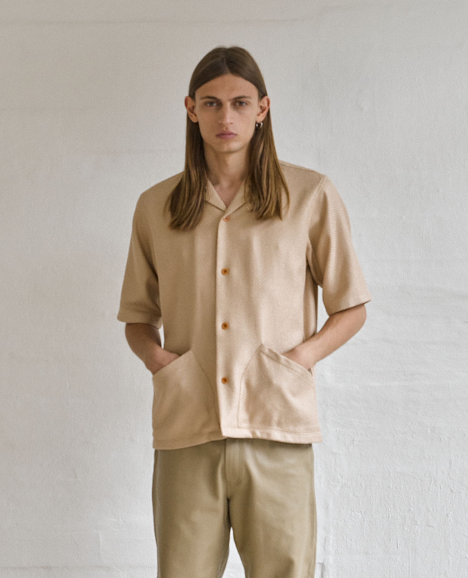 A slightly relaxed short sleeve Cabana shirt with a straight hem and two front pockets. Made of basketweave cotton blend and closed with eco-friendly corozo buttons.