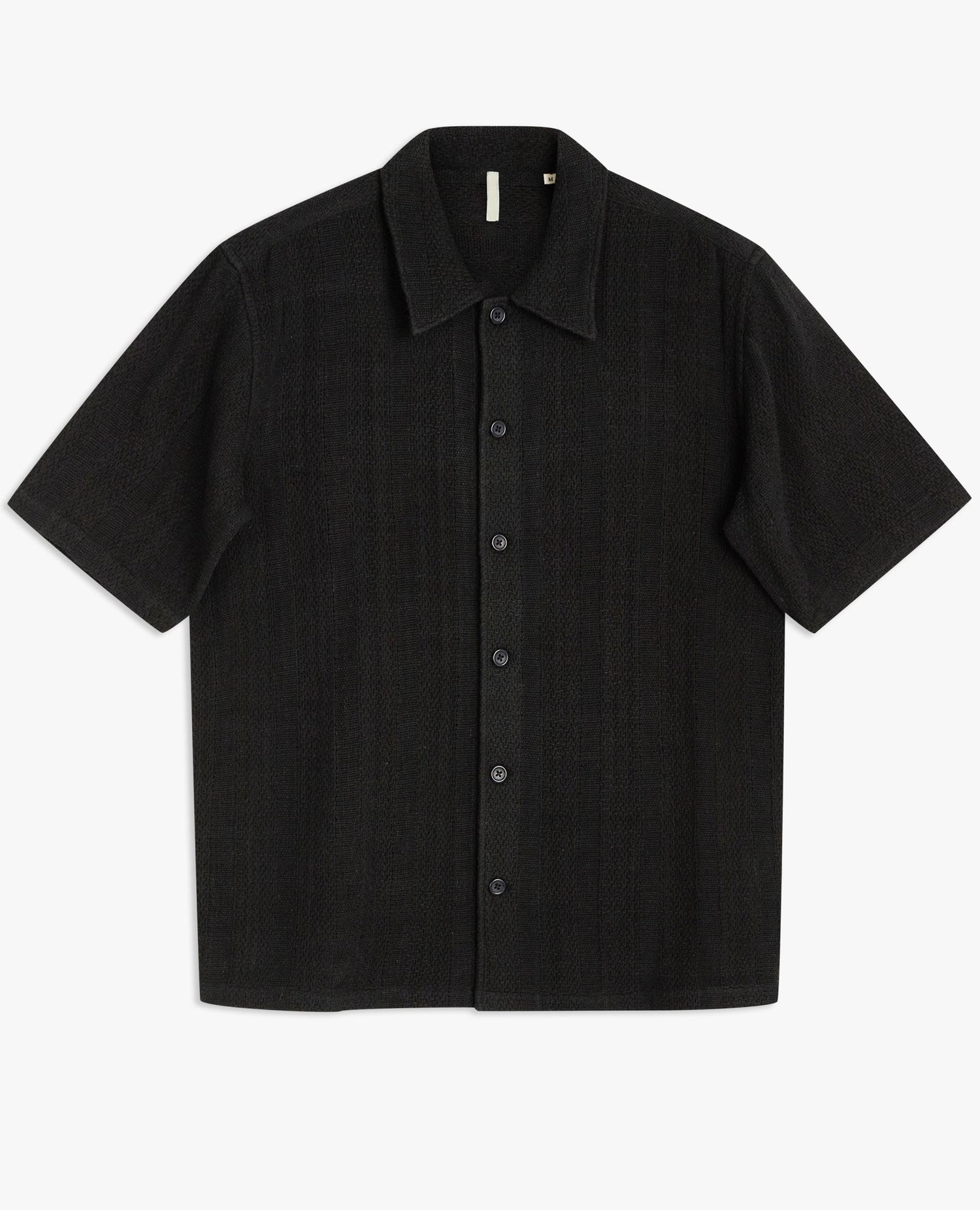 A classic crochet short-sleeve shirt with a straight hem. Made of heavy dry cotton and closes with eco-friendly corozo buttons.