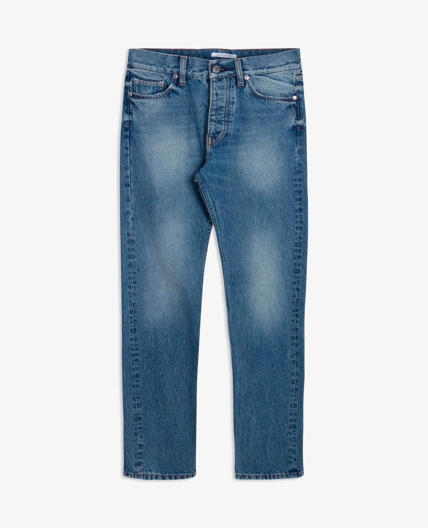Classic regular-fit Italian-made jeans. Made of 13,5 oz Italian denim spun from GOTS-certified organic cotton. Features five pockets (two back pockets, two front pockets, and a watch pocket) and a button fly. Complete with OEKO-TEX-certified recycled metal trim and an environmentally friendly blue rinse wash.
