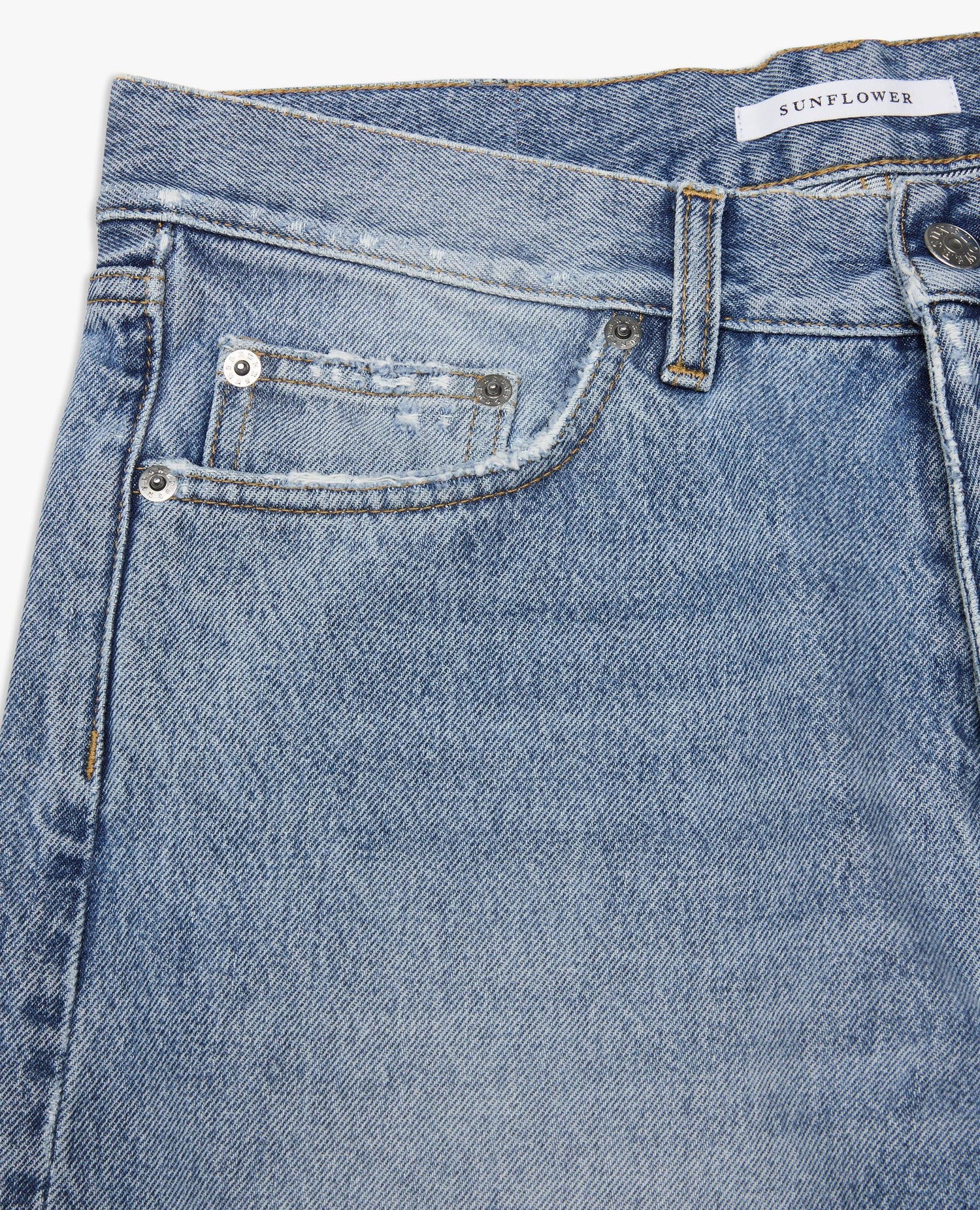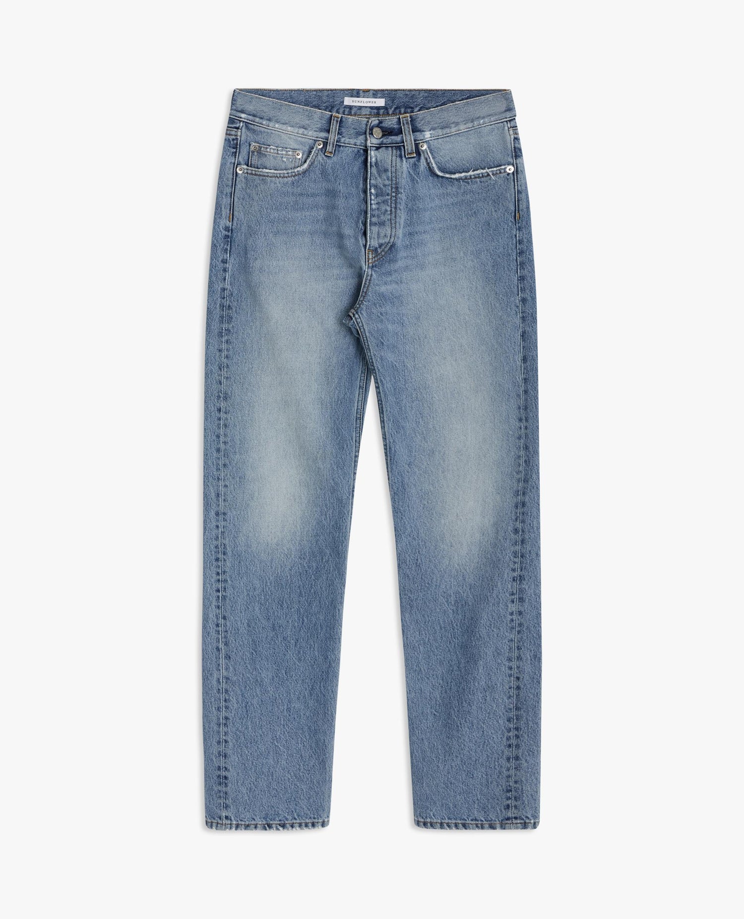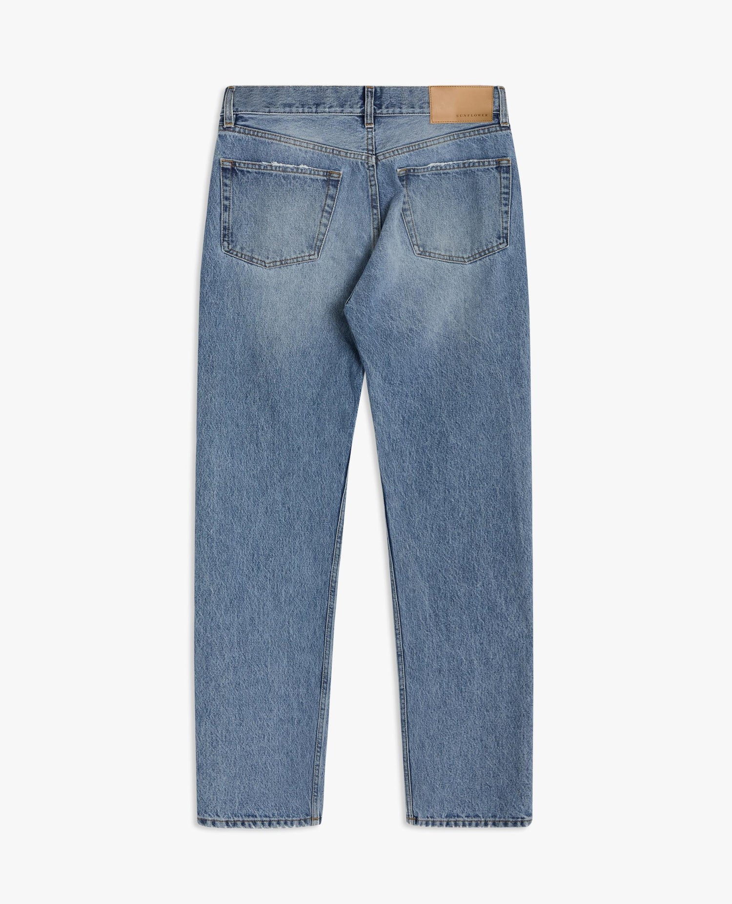 Classic regular-fit Italian-made jeans. Made of 13,5 oz Italian denim spun from GOTS-certified organic cotton. Features five pockets (two back pockets, two front pockets, and a watch pocket) and a button fly. Complete with OEKO-TEX-certified recycled metal trim and an environmentally friendly vintage blue wash.