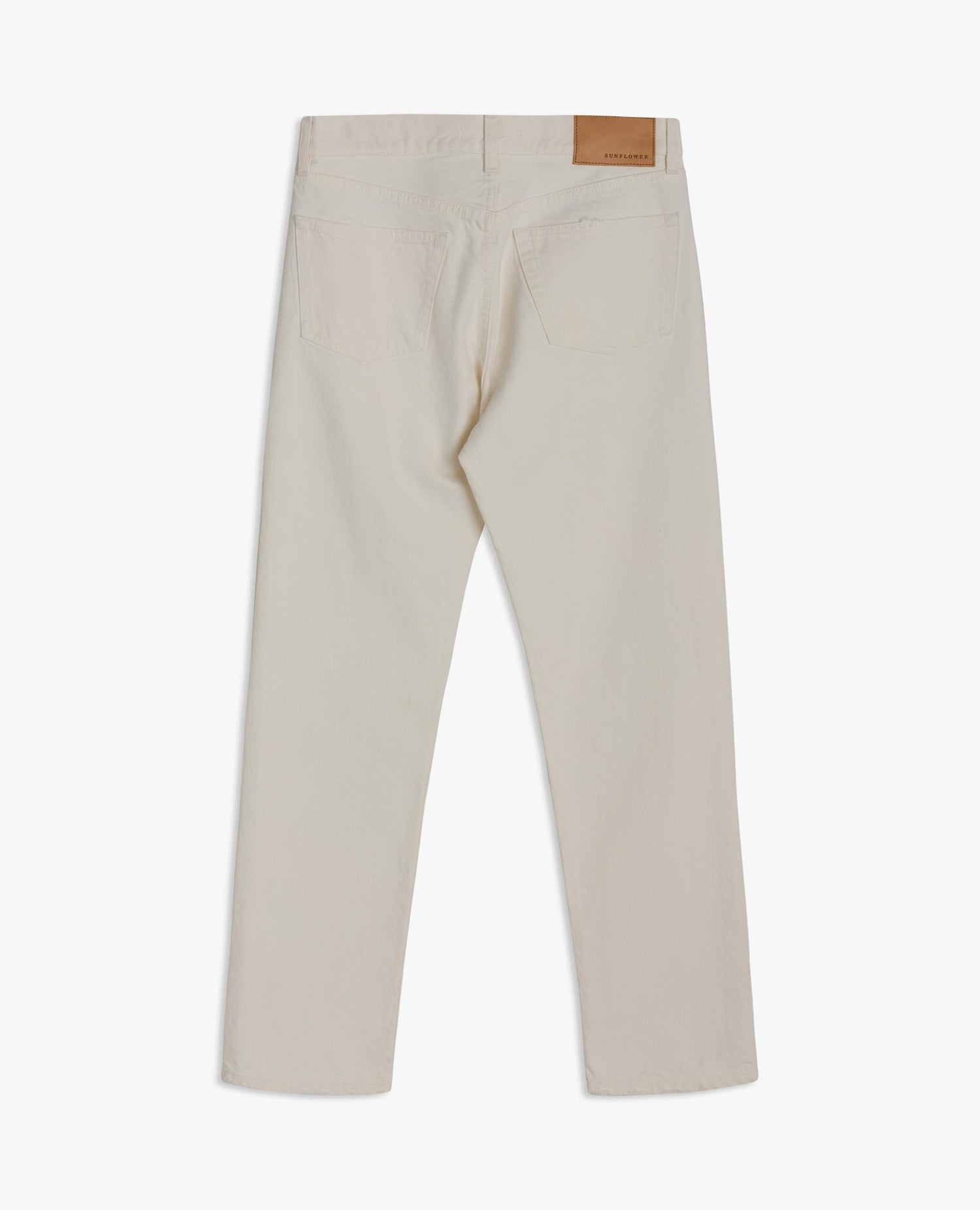 Classic regular-fit Italian-made jeans. Made of 13,5 oz Italian denim spun from GOTS-certified organic cotton. Features five pockets (two back pockets, two front pockets, and a watch pocket) and a button fly. Complete with OEKO-TEX-certified recycled metal trim and an environmentally friendly white wash.